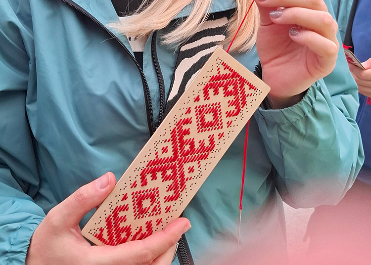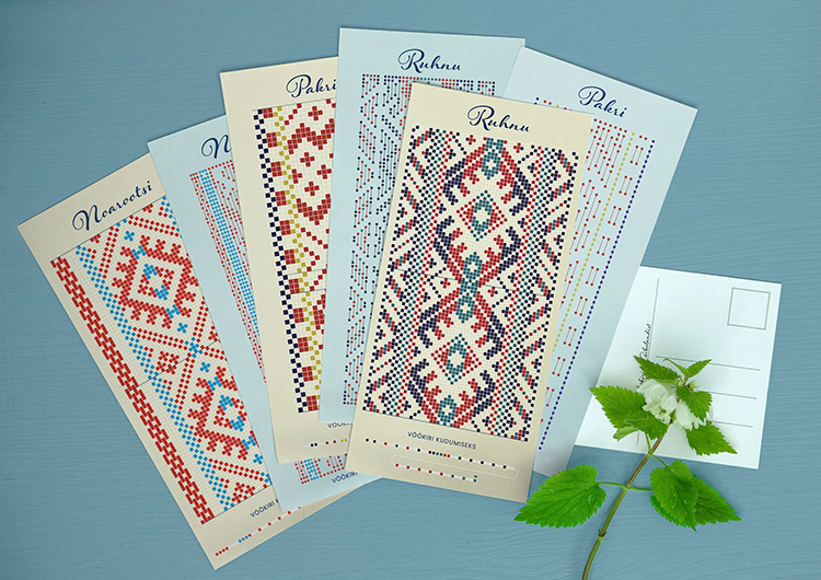 Esimene komplekt vöökirjadega postkaarte on pärit Aibolandist ja sündinud koostöös Pärimusdisainiga. Niidikult tikkimismuster, Pärimusdisainilt sama muster päris vöö kudumiseks. Kust tulevad järgmised kirjad, otsustad Sina – astu läbi ja hääleta!
